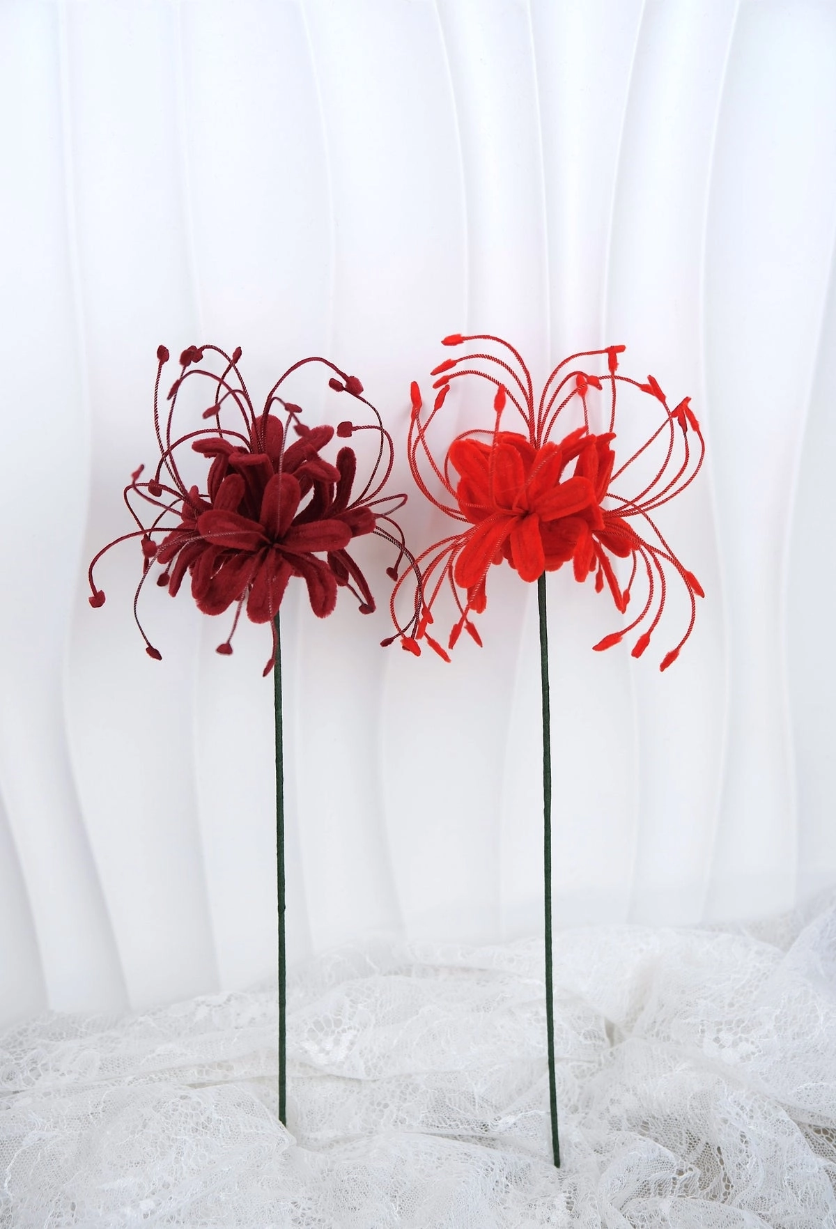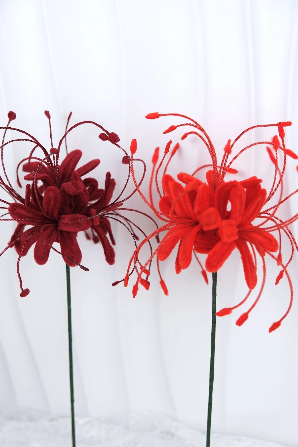 گل عنکبوتی ژاپنی دستساز ساخته شده با پیپ پاککن مخملی،